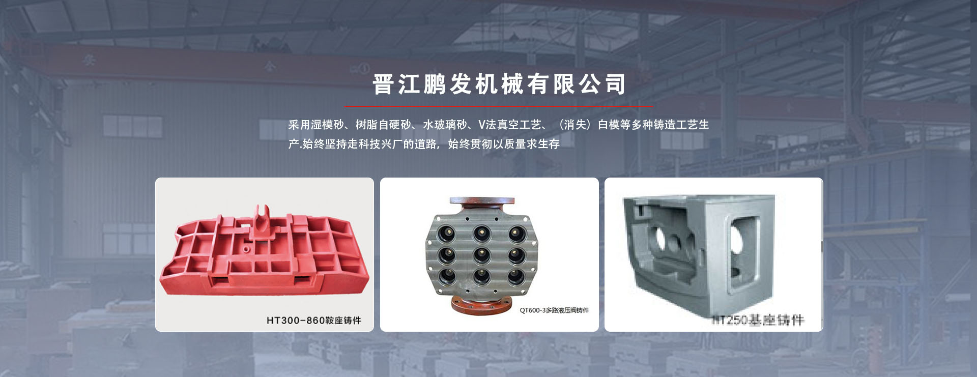 鵬發(fā)機械鑄造生產鞋機、大圓針織機、液壓機、數(shù)控機床、CNC加工中心配件。鵬發(fā)機械鑄造采用濕模砂、樹脂自硬砂、水玻璃砂、V法真空工藝、(消失)白模等多種鑄造工藝生產。鑄件材質有:多種牌號灰口鑄鐵、多種牌號球墨鑄鐵、鑄鋼件,同時也生產低合金鋼、高錳鋼等材質鑄件。員工120人,其中技術人員12人。具有雄厚的技術力量、先進的檢測儀器及完善的管理體系。現(xiàn)有設備:2T中頻感應電爐3套6爐,雙臂樹脂自硬混砂機3套,S114混砂機3套,V法真空鑄造生產線造型工作臺6站,拋丸、水力清理鑄件5套,退火設備1條,爐前鐵液質量管理儀,高頻紅外碳硫分析儀,微機高速分析儀,熔煉測溫儀,布氏、洛氏硬度計,金相、拉力試驗機,光譜儀等生產、檢測設備齊全。